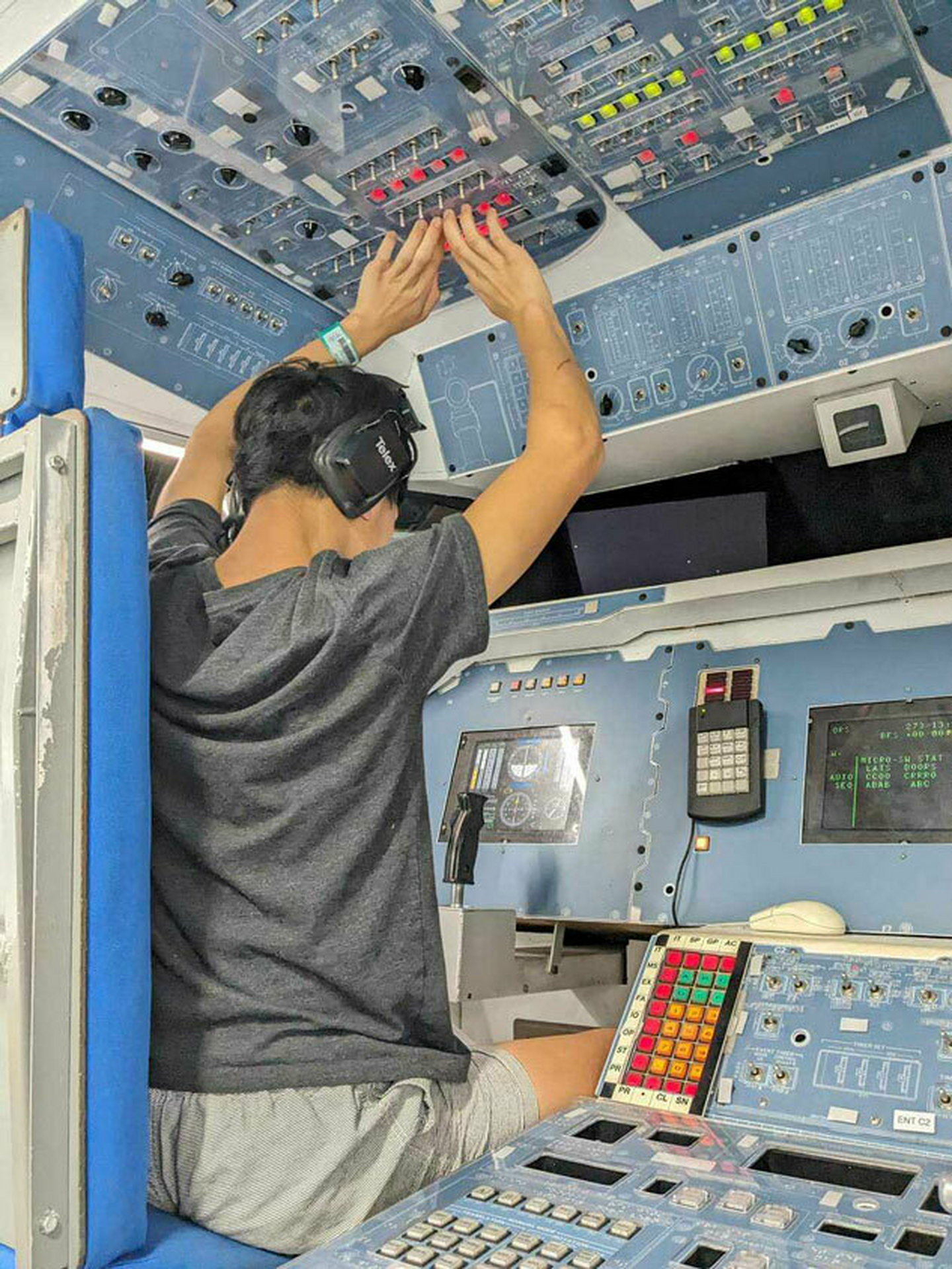 The camp is a scaled-down version of the sort of training that astronauts at NASA do. For example, a typical spaceship cockpit would have around 3,000 switches, but the space camp model has around 250.